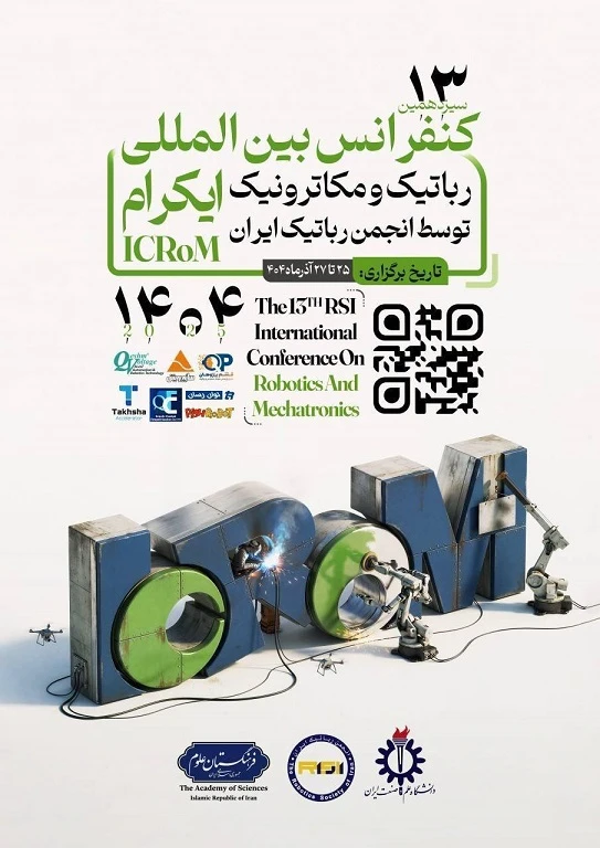 سیزدهمین کنفرانس بینالمللی رباتیک و مکاترونیک (ICRoM 2025) توسط انجمن رباتیک ایران، از 25 تا ۲۷ آذر ۴۰۴ در دانشگاه علم و صنعت ایران برگزار شد. این رویداد علمی-پژوهشی معتبر، فرصتی ارزشمند برای تبادل دانش، معرفی دستاوردها و تقویت پیوندهای میان دانشگاه، صنعت و جامعه علمی در حوزههای رباتیک و مکاترونیک فراهم آورد. کنفرانس با تمرکز بر تمهایی همچون رباتهای همکار، طراحی و بهینهسازی، کنترل حرکت و نیرو، برنامهریزی حرکت، دستکاری اشیا، رباتهای موازی و سری، رباتیک پزشکی و توانبخشی، رباتهای چرخدار و پا، و غیره، برگزار شد.